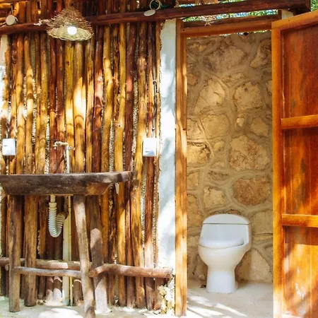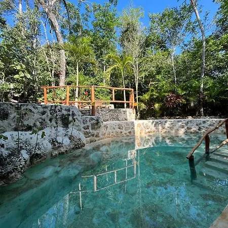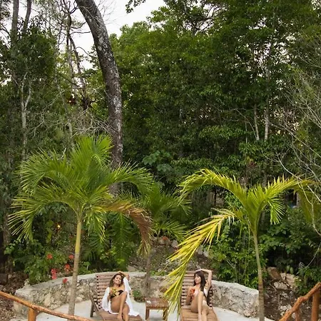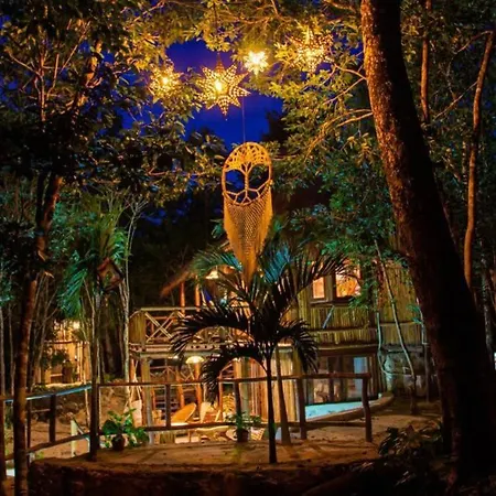 The 2-bedroom Selvaluna Cabana Eco-Chic Tulum is located approximately 25 minutes' walk from Templo "La nueva Jerusalem" and boasts a swimming pool provided on a terrace for a pleasant stay.